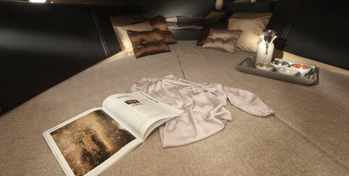 This open 8m model with a square nose and curvaceous fins resembles an elegant shark. Its cockpit is comfortable and relaxing thanks to a large L-shaped sofa transformable into a sun bath on the stern. The boat has convenient counter space complete with kitchen sink, hotplates and refrigerator, all which are located under the pilot seats. Below deck there is a single imperative: maximum functionality. A detached bathroom with WC and sink makes this boat unique in its category.